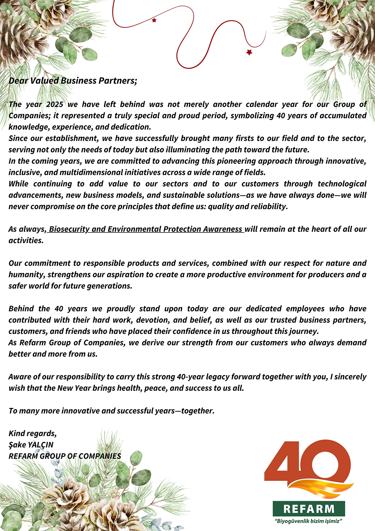 Since its establishment, Refarm has introduced numerous industry firsts in its mission to modernize poultry production in Türkiye and enhance sectoral efficiency. Most notably, Refarm has been a pioneer in promoting the concept of biosecurity through the emphasis on preventive veterinary medicine.