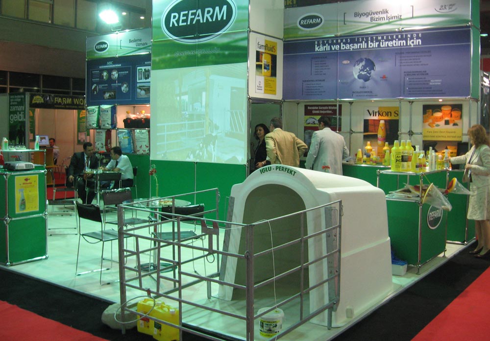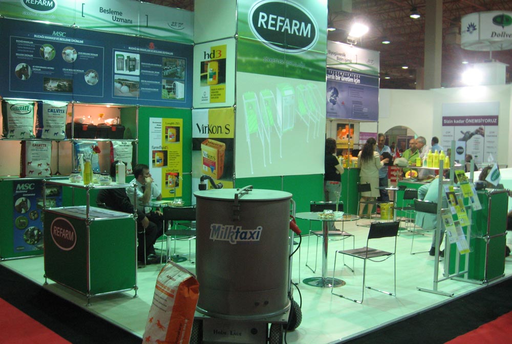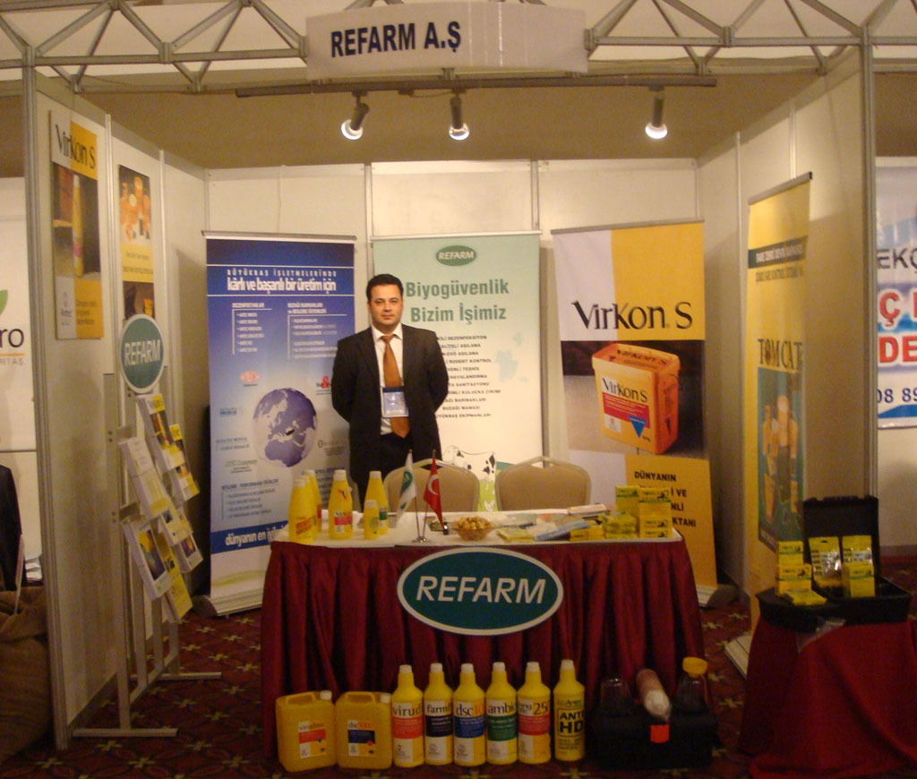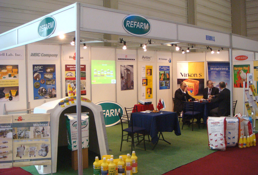 4. AGROEXPO Eurasia Tarım, Sera ve Hayvancılık Fuarı 20 - 23 Kasım 2008 tarihlerinde Kültürpark - İzmir'de Türk tarım sektörünün global firmalarının katılımı ile gerçekleşti.REFARM ŞİRKETLER TOPLULUĞU olarak bizlerde fuarda standımızla yer aldık.22 ülkenin firma temsilcilerini de ziyaretçiyle buluşturan Agroexpo Eurasia, katılımcı firmalarına olduğu kadar ziyaretçilerine de fırsatlar sundu.Sektör üreticilerimizden, çiftliklerimize, yetiştiricilerimizden bayilerimize kadar herkes için Biyogüvenlik konusunda önemli bir buluşma noktası olan Refarm bu fuarda Büyükbaş ve Kanatlı alanında Türkiye tek temsilcisi olduğu aşağıdaki firmaların ürünlerini tanıtarak ziyaretçilerin dikkatini çekti.MSC (ABD): Buzağı Mamaları ve Performans Ürünleri DUPONT - ANTEC (İNGİLTERE): Dezenfektanlar.HOLM & LAUE (ALMANYA): Buzağı barınakları, besleme sistemleri.Temsilcisi olduğumuz MSC firmasının yetkililerinden Sayın Kent URE de standımızda konuğumuzdu. Birçok katılımcı ve ziyaretçilerimiz ile buzağı besleme, doğru buzağı maması seçimi ve kullanımı, buzağı mamalarının besleyici değerleri ve büyükbaş performans ürünleri gibi konularda görüş alışverişinde bulunuldu, yeni bilgi ve yaklaşımlarını ziyaretçilerimiz ile paylaşma imkanı buldu. Refarm A.Ş.'nin düzenli katıldığı fuarlardan biri olan Agroexpo bu yıl da ziyaretçilerimizden beklediğimiz ilgiyi gördü ve Refarm A.Ş. olarak bizler ziyaretçilerimizi zengin ürün yelpazemiz ve konular ile ilgili uzmanlarımız ile bilgilendirme imkanı bularak başarılı bir fuarı daha tamamladık.