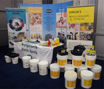 Geçtiğimiz yıllarda olduğu gibi; Biyogüvenlik uygulamalarının temel taşı olan Virkon S dezenfenktanı, geniş kullanım alanıyla (Ruminant, kanatlı ve sera alanları) ve başta ŞAP hastalığı ve Avian influenza –Kuş gribi gibi bilinen virüs, bakteri, mantarlara karşı etkisiyle ziyaretçilerimizden yoğun ilgi gördü.