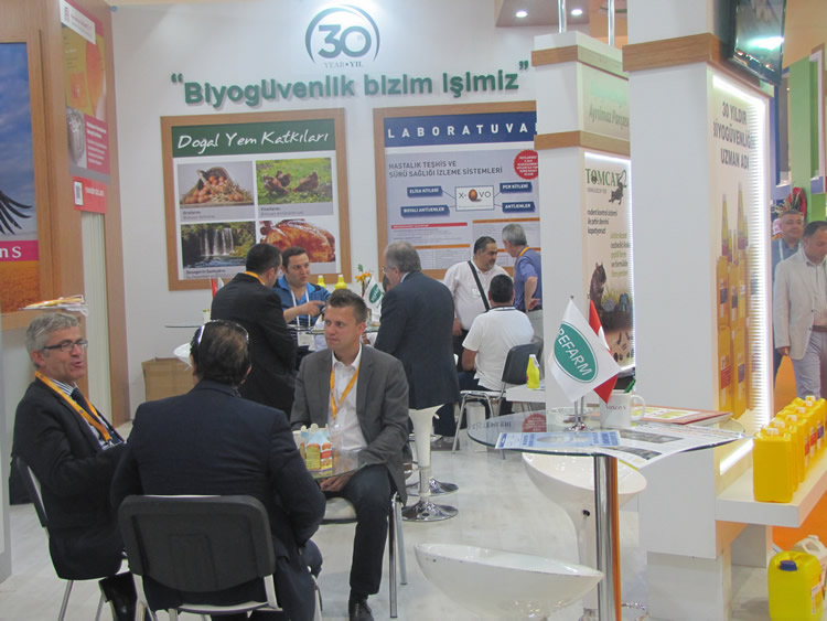 StandımızdaAntec Dupont dezenfektanlarımızı, Fort Dodge kanatlı aşılarımızı, Bell Laboratuarları Tomcat rodent kontrol ürünlerimizi, MSC buzağı maması ve besleme ürünlerimizi, H&L buzağı barınakları ve besleme ekipmanlarımızı, McCulloch buzağı acil müdahale kitimizi sergiledik. 4 gün boyunca hem dostlarla sohbet etme olanağı bulduk, hem de uzman kadromuz ile tüm ilgililere biyogüvenlik kavramının ve aşamalarının, gerek üretim aşamasındaki verimliliğe katkıları gerekse sağlıklı ürünler üretmedeki rolü ayrıntıları ile aktarıldı.