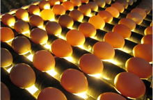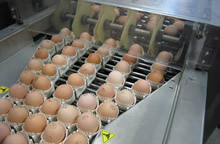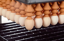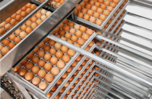 Otomatik yumurta paketleme, gelişim sepetlerine yumurtaların geçişini kolaylıkla sağlar. |